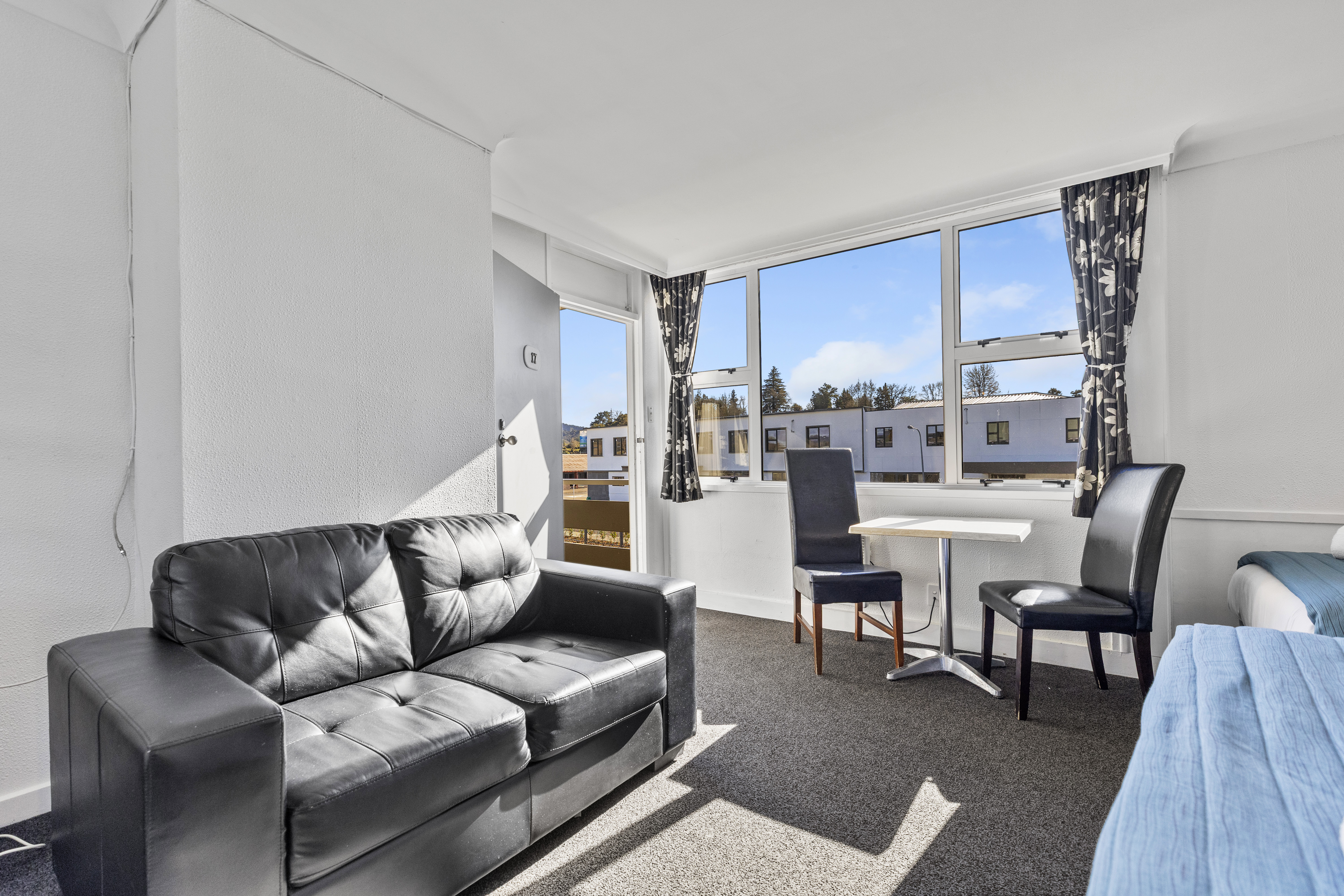 Queen bed, & 2 single beds for maximum of 4 occupants.